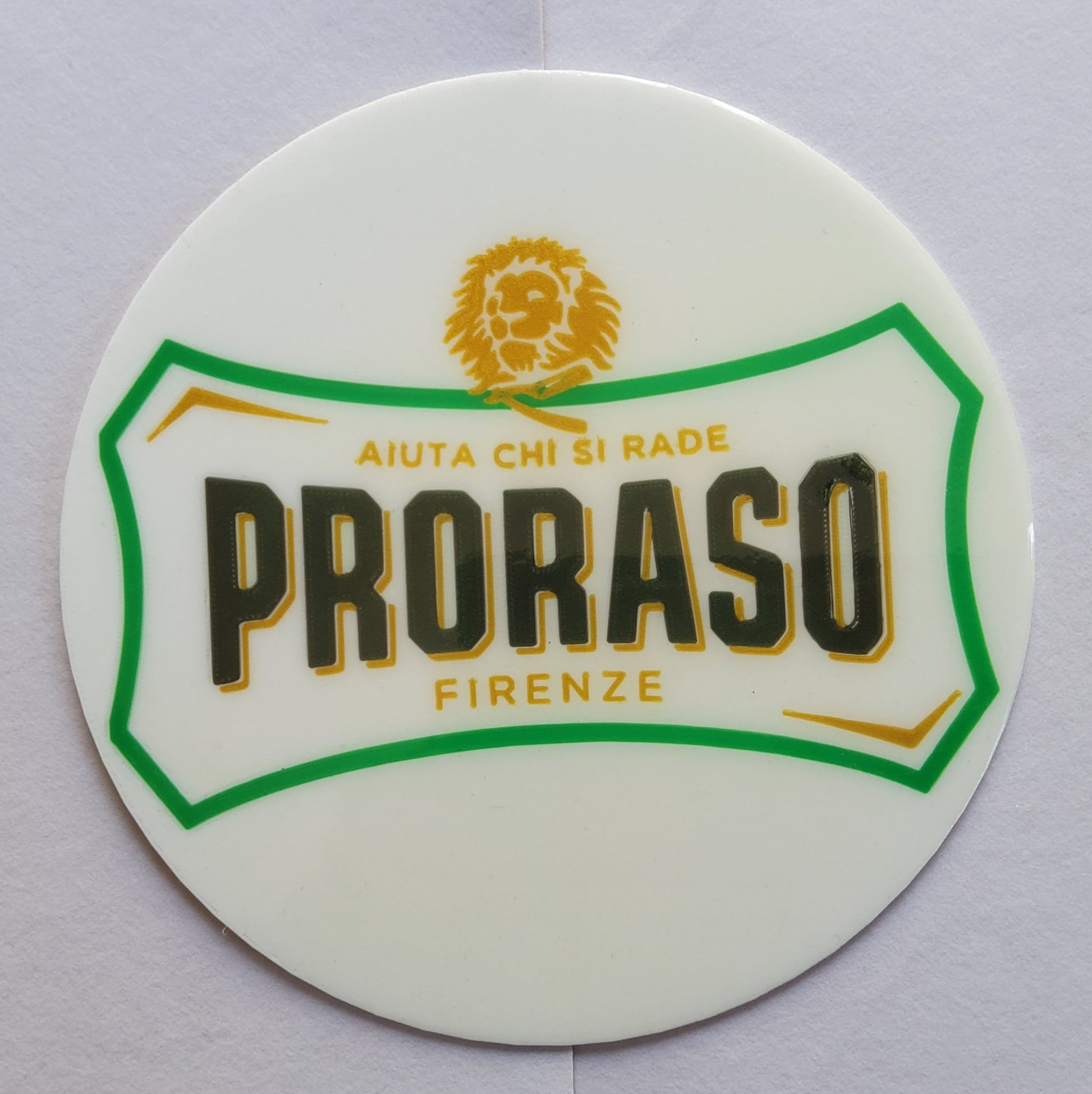 Placa decorativa con la marca de productos de afeitado italiana Proraso. Puede acompañar la decoración de una barbería o simplemente para los fans de esta marca y sus colecciones.