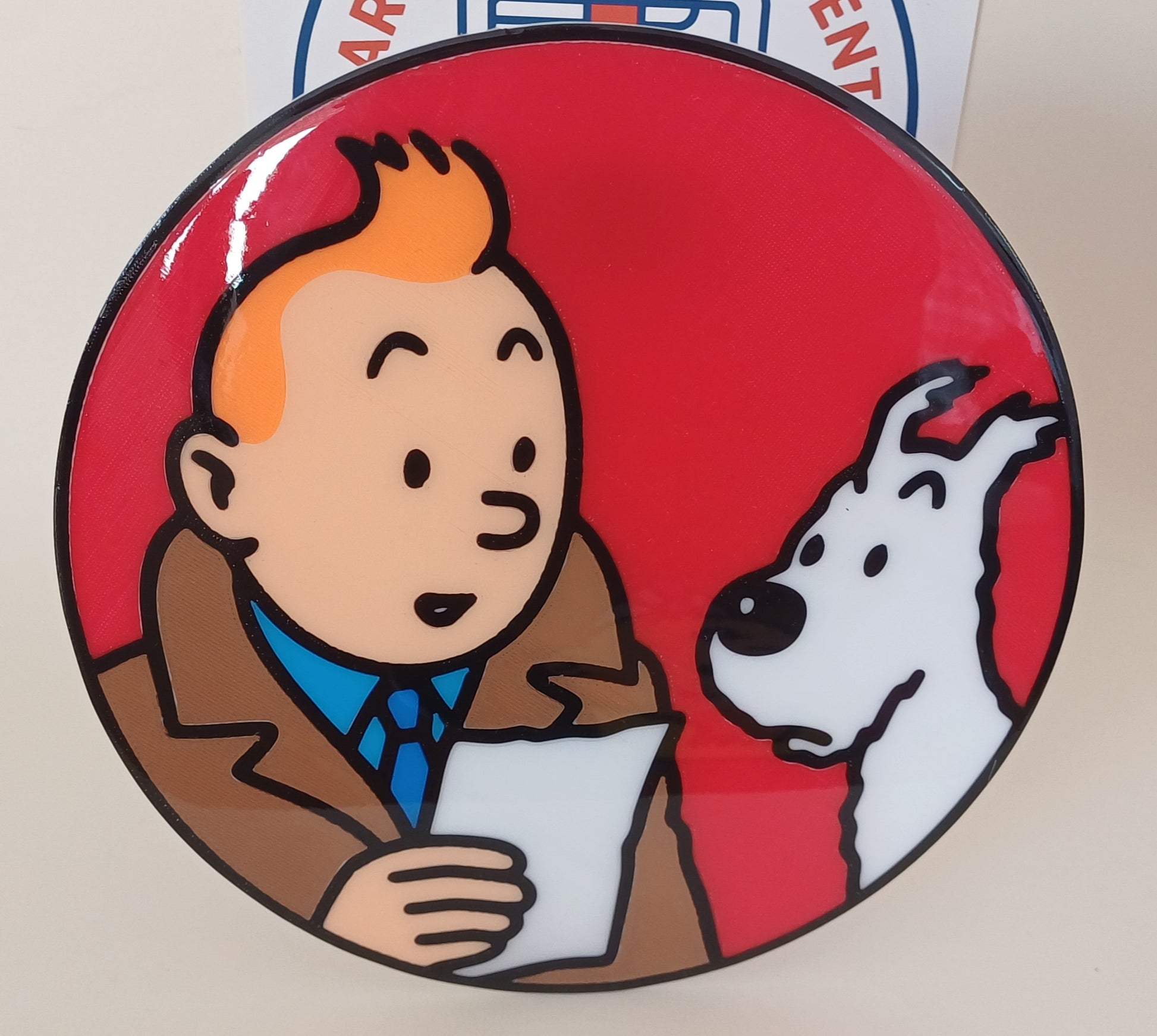 Dale un toque nostálgico y elegante a tu espacio con esta placa decorativa inspirada en el icónico dúo del cómic europeo: Tintín y su inseparable perro Milú. Diseñada con colores vivos y líneas definidas, esta pieza presenta una escena clásica de estilo ligne claire, ideal para amantes de la ilustración vintage y del arte pop. Impresa en alta calidad sobre superficie rígida, es perfecta para decorar estanterías, escritorios o paredes. Una obra que combina cultura, diseño y emoción en un formato redondo y original.